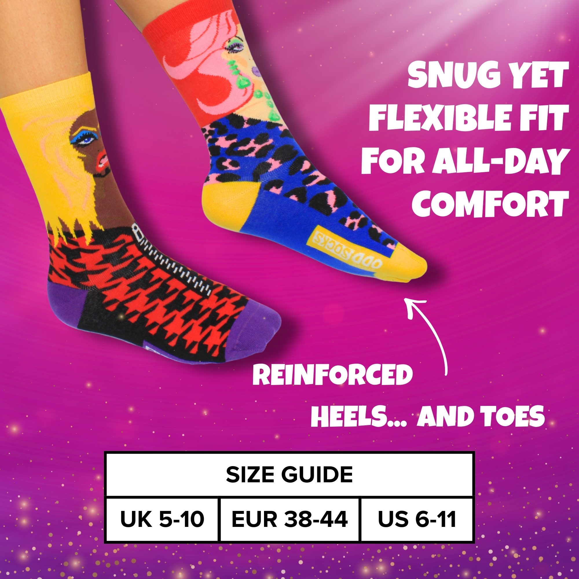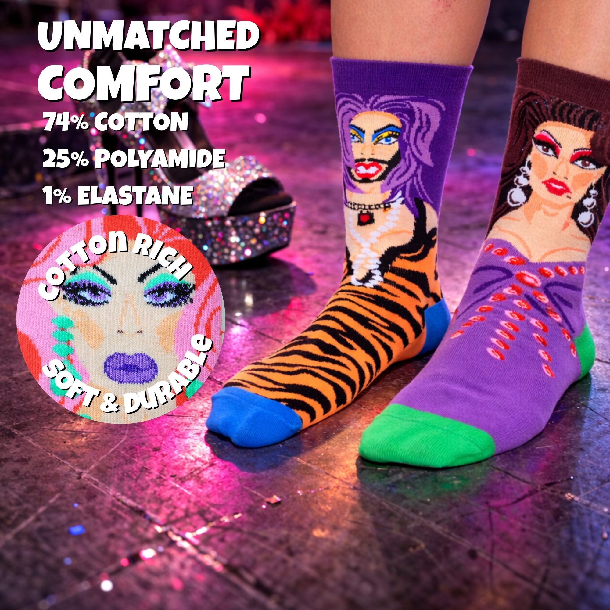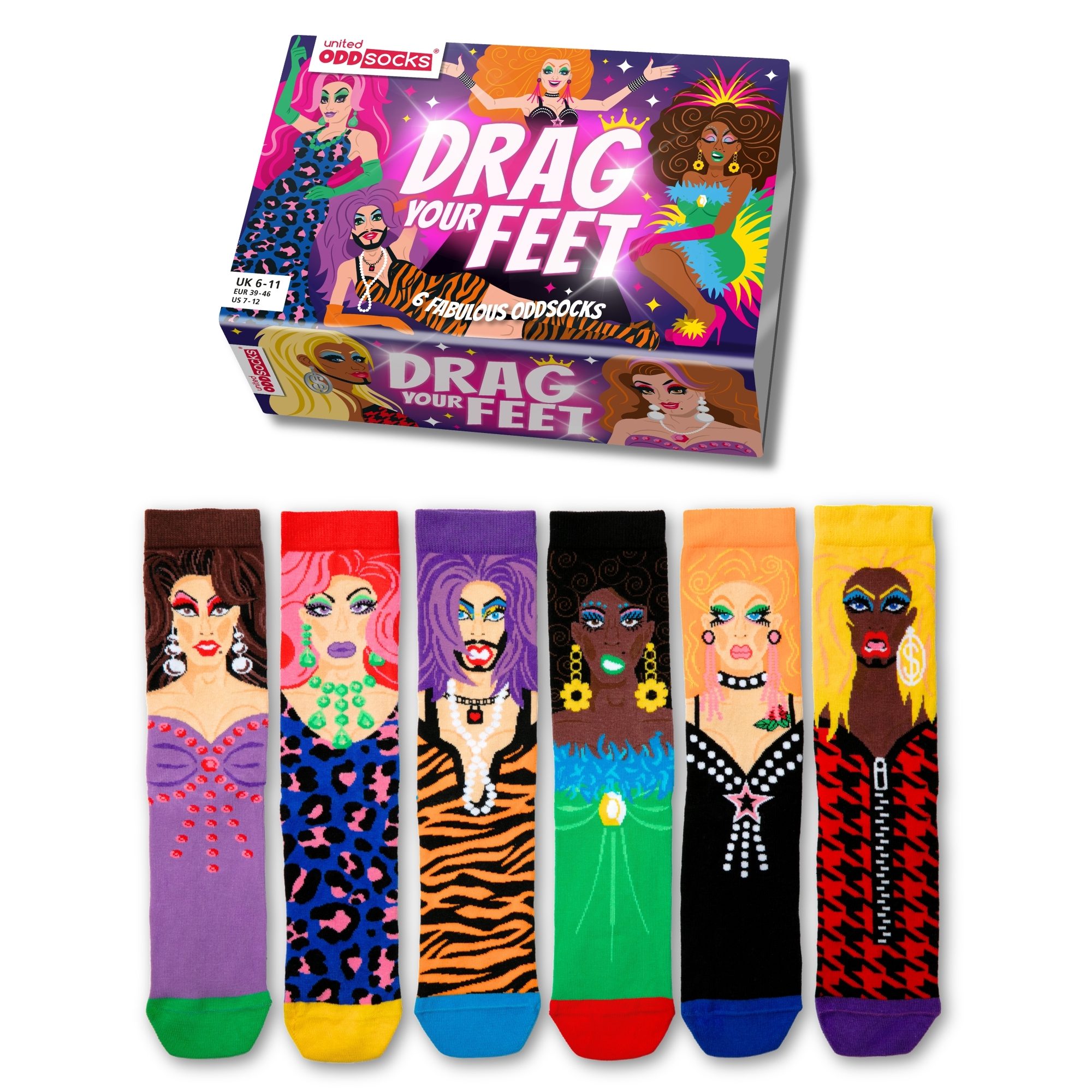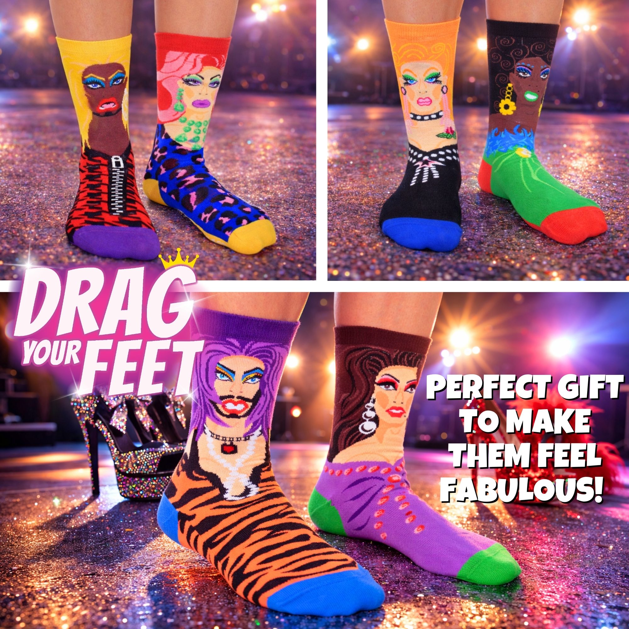 Pair the queens up and guarantee some fabulous fun! Drag Your Feet – 6 fierce oddsocks to make sure you’ll slay the day!