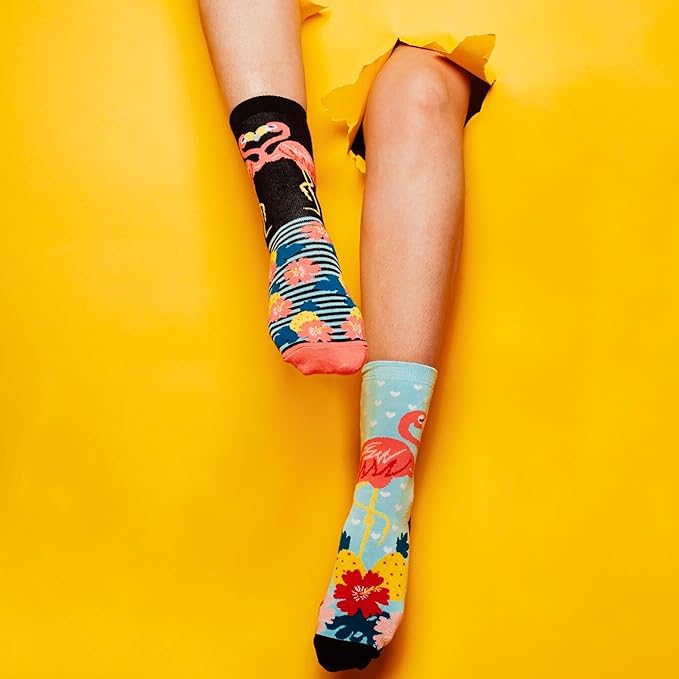 Flamingos are famous for only standing on one leg at a time but they always know when to put their best foot forward. We think you’ll probably want to use both legs most of the time and so there are enough socks in our collection to mix up in 15 different ways. Go Flamingo!