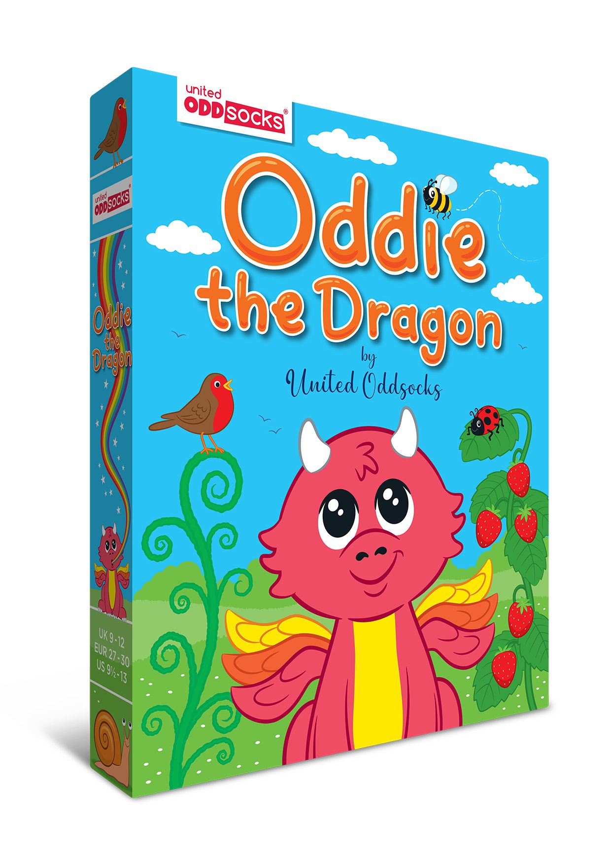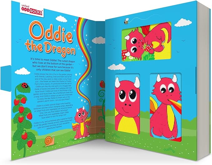 It’s time to meet Oddie! The cutest dragon who lives at the bottom of the garden – but we don’t know for sure because it’s only children that can see Oddie! Oddie is a really special dragon  who breathes rainbows and even has colour changing wings, depending on what fruits and vegetables are around at dinner time. Sometimes shy and sometimes a little bit scared, Oddie always has his garden friends around, and feels safe and loved all the time and they all have wonderful adventures together.